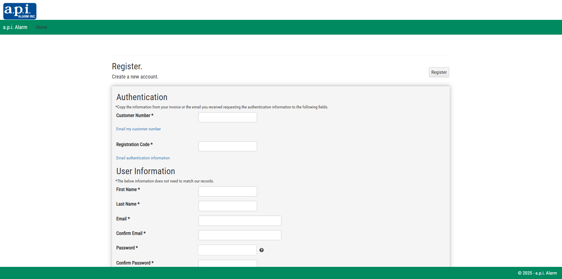 After entering your customer number and registration code, proceed with completing the remainder of the form and click “Register” at the top right of the form.