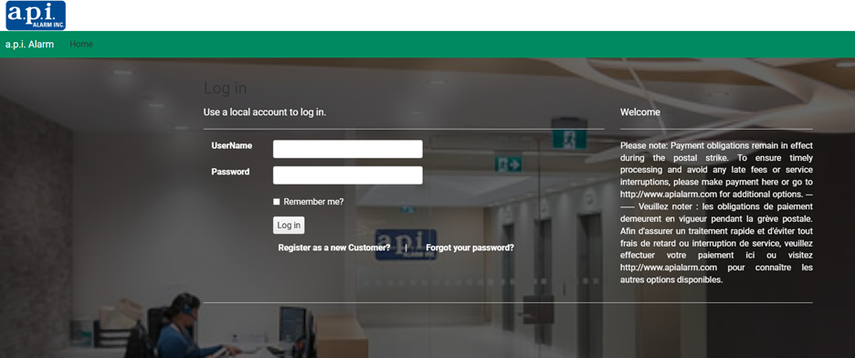 Log on to a.p.i. Payment Portal and you can set up your credit card or bank draft to automatically pay your monitoring or other cycle invoices.